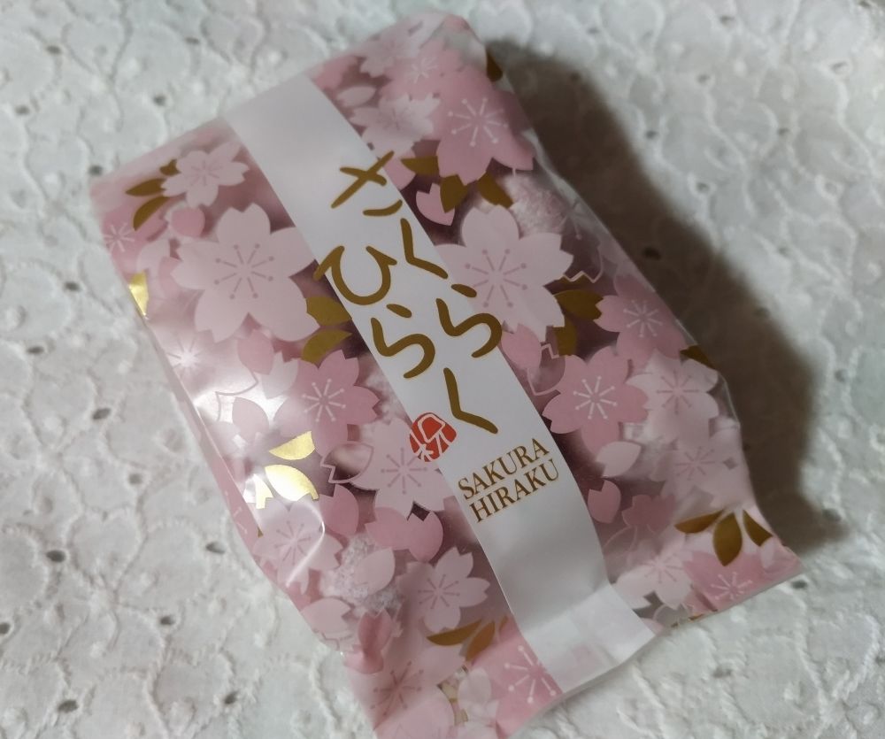 帰りに立ち寄った弘法の里湯内の売店「やまなみ」では、桜の包装がかわいい豆菓子を購入しました。